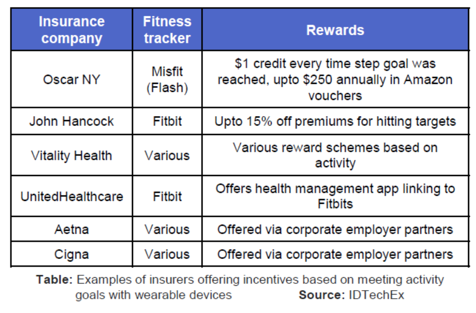 Various insurers offer incentives and premium discounts for consumer grade wearables devices: